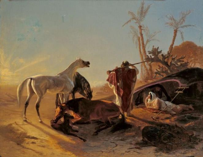 Keywords: Theodor Horschelt. Rastendes Beduinenpaar mit Araberpferden. 1853.jpg Artwork Creator Theodor Horschelt 1853 Oil on canvas cm 63 6 79 5 accession number object history credit line http //3 bp blogspot com/_QSV8hW-NBww/Sl81SRzYxbI/AAAAAAAADBI/f3oVTsCEJY8/s1600/Theodor+Horschelt+-+Rastendes+Beduinenpaar+mit+Araberpferden+ 1853 +-+ C3 96l+auf+Leinwand+ 63 6+x+79 5+cm jpeg 3 bp blogspot com Theodor Horschelt 1853 19th-century oil on canvas paintings 1853 paintings Orientalist paintings 19th-century paintings location missing Tents in art 19th-century genre paintings Resting in art Paintings of people with horses http //kunstkommtvonkoennen blogspot com/2009/07/jozef-brandt-zwischen-munchen-und-polen html kunstkommtvonkoennen blogspot com PD-Art-100 |