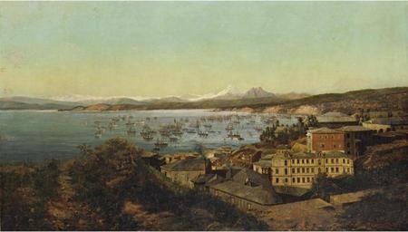 Keywords: Theodor Ohlsen - Ein Blick auf den Hafen von ValparaÃso.jpg Theodor Ohlsen 1855 “1913 en A view of the port of ValparaÃso Ein Blick auf den Hafen von ValparaÃso 1891 oil canvas cm 151 1 87 9 object history credit line signed inscribed Valp and dated 91 lower left accession number http //www sothebys com/en/ecat/lot render html/2004/latin-american-art-n08001/lotNum/76 Sotheby's Other versions PD-Art-100 Theodor Ohlsen Landscape paintings of Chile Oil paintings of seascapes 1891 paintings Images from Sotheby's 1890s landscape paintings ValparaÃso in art |