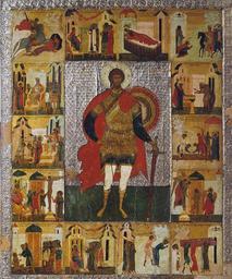 Keywords: Theodore Stratelates - hagiography icon.jpg Феодо Ст атилат с житием Икона п оисходит из це кви Феодо а Ст атилата на Ручье в овго оде Х анится в соб ании овго одского госуда ственного исто ико-а хитекту ного и художест­венного музея-заповедника овго од Россия http //www belygorod ru/img2/Ikona/Used/0SvFedorStratilatVZhitiiVNOV jpg end of 15th century Author PD-old-100 Theodore Stratelates hagiography icons 15th-century icons of Russia