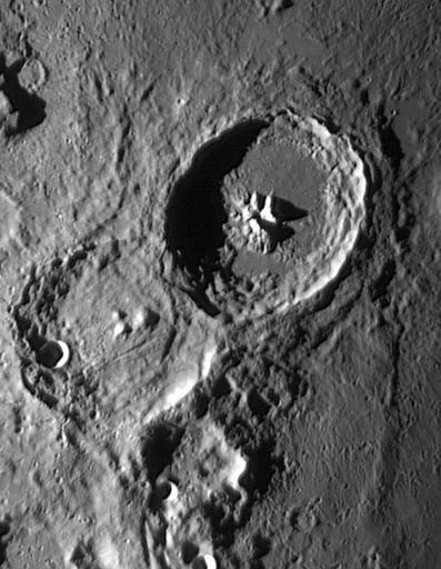 | Keywords: Theophilus 130924 01.jpg en Lunar craters Theophilus Cyrillus Imaged 2013 SEP 24 10 08 UT The Moon returns to the evening skies this week wending her way through the dim autumnal constellations as she waxes to First Quarter phase which occurs on the 10th at 12 57 am Eastern Standard Time Look for Luna ™s crescent above the dazzling disc of Venus in the southwestern sky at dusk on the 6th For the rest of the week she ™s pretty much on her own With little competition from other bright attractions this will be another good week to get to know the Moon ™s many interesting attractions Virtually any optical aid will transform her from a silver-flecked light in the sky to a place with stark sun-drenched landforms On the evening of the 8th point your telescope at the Moon to see one of my favorite lunar landmarks the prominent double crater pair of Theophilus and Cyrillus They will be very prominent about halfway between the cusps along the terminator line Theophilus is the fresher of the two craters with much of its ejecta blanket filling the floor of Cyrillus Theophilus is about 100 kilometers 61 miles in diameter and 3 3 kilometers 11 000 feet deep Its prominent central peak rises nearly 1 5 kilometers one mile above its floor As impressive as this crater may appear looks can be deceiving If you were able to stand on the floor of the crater about halfway between the terraced walls and central peak you would think you were on a vast flat plain Since the Moon is a much smaller sphere than the Earth your apparent horizon is much closer on the order of 1 5 kilometers one mile and the curvature of the surface drops away very quickly US Naval Observatory http //www usno navy mil/USNO/tours-events/sky-this-week/the-sky-this-week-2013-november-5-12 USNO Imaged 2013 SEP 24 10 08 UT Theophilus crater Cyrillus crater PD-USGov-Military-Navy |