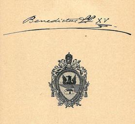 Keywords: Thérèse Martin-Histoire d'une âme-A51.jpg fr Signature du pape Benoît XV 1940 Sainte Thérèse de l'Enfant Jésus Histoire d'une âme écrite par elle-même Lisieux Office central de Lisieux Calvados Bar-le-Duc Imprimerie Saint-Paul 1937 édition 1940 612 p Office de Lisieux 1940 Custom license marker 2013 05 08 PD-old Biography of Thérèse Martin Histoire d'une âme Uploaded with UploadWizard Benedictus XV Signatures of popes |