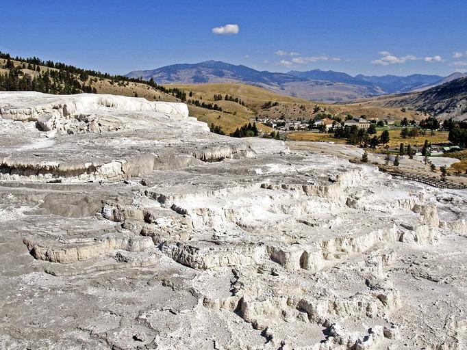 Keywords: thermal springs mammoth hot spring limestone yellowstone national park wyoming usa landscape scenery tourist attraction erosion nature volcanic minerals water geothermal terrace deposits hot water