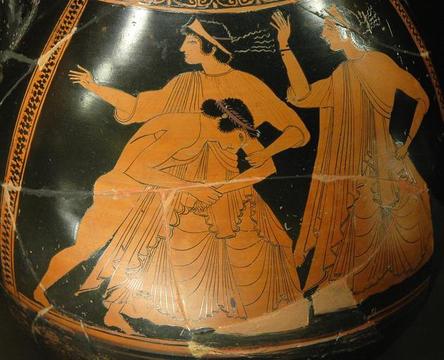 Keywords: Thetis Peleus Louvre G65.jpg Pioneer Group or Smikros Thetis raped by Peleus Side A from an Attic red-figure pelike ca 510 BC “500 BC Enlèvement de ThĂ©tis par PĂ©lĂ©e Face A d'un pĂ©likè attique Ă figures rouges v 510 “500 av J -C H 40 cm 15 ½ in Diam 27 9 cm 10 Âľ in Museum Louvre Department of Greek Etruscan and Roman Antiquities Sully first floor room 43 Beazley ARV2 21 5 object history credit line Campana Collection 1861 accession number G 65 Jastrow 2006 other versions <gallery> Image Pelike Pioneer group Louvre G65 jpg Full view Image Detail Pioneer Group Louvre G65 jpg Thetis' head Image Detail Pioneer Group Louvre G65 n2 jpg Peleus' head </gallery> Rape of Thetis Pelikai Pioneer Group Greek antiquities in the Louvre - Room 43 510s BC pottery in France Paris 500s BC pottery in France Paris Louvre images of low quality Vases from the Campana Collection Thetis in ancient Greek pottery Peleus in ancient Greek pottery Nereids in ancient Greek pottery |