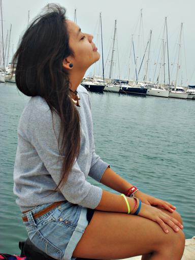 Keywords: thinking youth young women girl posing pretty sea female teen open air princess