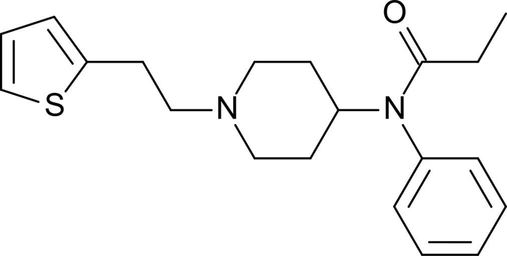 Keywords: Thiofentanyl.svg Own work created with BKchem based on Image Thiofentanyl png en wikipedia Ronhjones CommonsHelper 2007 08 03 first version ; 2011 07 14 last version Surachit wikipedia en Surachit Original upload log page en wikipedia Thiofentanyl svg 2011-07-14 21 15 Edgar181 128×238× 20915 bytes <nowiki>fixed svg bug</nowiki> 2007-08-03 07 39 Surachit 128×238× 11341 bytes <nowiki> Own work created with BKchem based on Image Thiofentanyl png Licensing </nowiki> N-substituted anilides Opioids Receptor agonists Piperidines Thiophenes