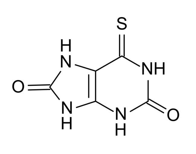 Keywords: Thiouric acid skeletal.svg thiouric acid the main metabolite of azathioprine own Anypodetos 2012-06-24 BKchem 001 -check Purines Organic acids Cc-zero
