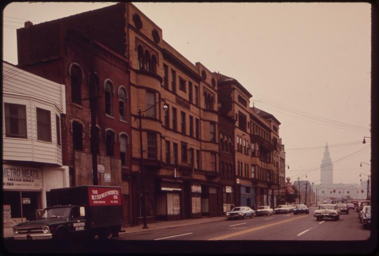 | Keywords: THIS BLOCK OF STOREFRONT APARTMENT BUILDINGS ON DETROIT AVENUE WILL BE RAZED TO MAKE WAY FOR PUBLIC HOUSING - NARA - 550138.tif Scope and content General notes 550138 Local identifier 412-DA-7653 Environmental Protection Agency 12/02/1970 - NARA-Author Aleksandrowicz Frank J Frank John 1921- Photographer 8452210 <br /> Cleveland Cuyahoga county Ohio United States North and Central America inhabited place 4201382 41 483 -81 683 <br /> Still Picture Records Section Special Media Archives Services Division NWCS-S National Archives at College Park 8601 Adelphi Road College Park MD 20740-6001 07/1973 Record group Record Group 412 Records of the Environmental Protection Agency 1944 - 2006 Record group ARC 708 DOCUMERICA The Environmental Protection Agency's Program to Photographically Document Subjects of Environmental Concern compiled 1972 - 1977 Series ARC 542493 File unit File unit ARC Variant control numbers Agency-Assigned Identifier 128/33/007653<br /> NAIL Control Number NWDNS-412-DA-7653 yes Other versions <gallery> File THIS_BLOCK_OF_STOREFRONT_APARTMENT_BUILDINGS_ON_DETROIT_AVENUE_WILL_BE_RAZED_TO_MAKE_WAY_FOR_PUBLIC_HOUSING_-_NARA_-_550138 tif tif File THIS_BLOCK_OF_STOREFRONT_APARTMENT_BUILDINGS_ON_DETROIT_AVENUE_WILL_BE_RAZED_TO_MAKE_WAY_FOR_PUBLIC_HOUSING_-_NARA_-_550138 jpg jpg </gallery> NARA-cooperation PD-USGov NARA TIF images with categorized JPGs Detroit Avenue Cleveland Terminal Tower 1973 in Cleveland Apartment buildings in Cleveland Frank John Aleksandrowicz Ohio City |