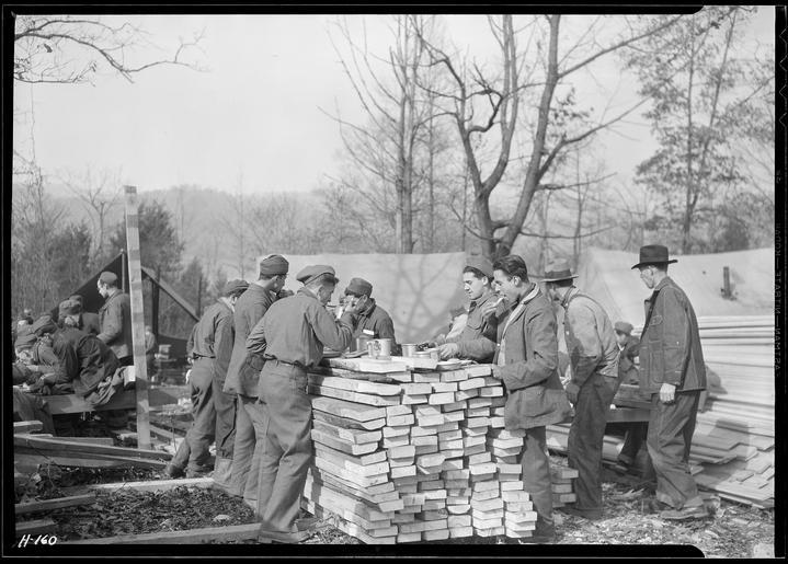 | Keywords: "This `Counter Restaurant' is at CCC Camp, TVA ^22, near Esco, Tennessee. Temporarily the boys are eating outdoors... - NARA - 532778.tif Scope and content General notes 532778 Local identifier 142-H-160 Tennessee Valley Authority 1933 - NARA-Author Hine Lewis Wickes 1874-1940 Photographer 1122914 <br /> Tennessee United States North and Central America state 4192111 35 5 -85 <br /> Still Picture Records Section Special Media Archives Services Division NWCS-S National Archives at College Park 8601 Adelphi Road College Park MD 20740-6001 1933-11-17 Record group Record Group 142 Records of the Tennessee Valley Authority 1918 - 2000 Record group ARC 471 Lewis Hine Photographs for the Tennessee Valley Authority TVA compiled 1933 - 1933 Series ARC 532624 File unit File unit ARC Variant control numbers NAIL Control Number NWDNS-142-H-160 yes Other versions <gallery> File This_`Counter_Restaurant'_is_at_CCC_Camp _TVA_ 22 _near_Esco _Tennessee _Temporarily_the_boys_are_eating_outdoors _-_NARA_-_532778 tif tif File This_`Counter_Restaurant'_is_at_CCC_Camp _TVA_ 22 _near_Esco _Tennessee _Temporarily_the_boys_are_eating_outdoors _-_NARA_-_532778 jpg jpg File This_Counter_Restaurant_is_at_CCC_Camp _near_Esco _Tennessee_-_NARA_-_532778 tif tif Cropped color corrections </gallery> NARA-cooperation PD-USGov 1933 in Tennessee Civilian Conservation Corps camps Lunch counters Lunch time Union County Tennessee Timber People eating NARA TIF images with categorized JPGs |