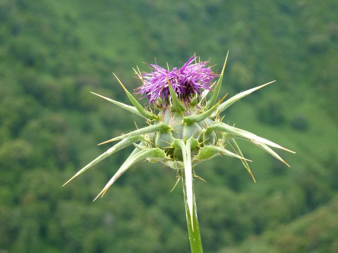 Keywords: thistle blossom bloom purple thorns wild flower close