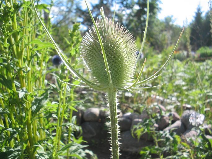 Keywords: thistle garden summer green leaf sky blue plant stones