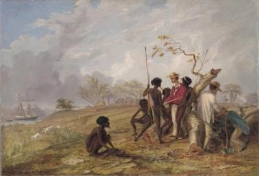 Keywords: Thomas Baines, Thomas Baines with Aborigines near the mouth of the Victoria River, N.T, 1857.jpg Artwork Creator Thomas Baines Thomas Baines with Aborigines near the mouth of the Victoria River N T Also titled Artist with a group of Aborigines; ship in distance oil canvas cm 45 65 5 Canberra National Library of Australia accession number Identifier nla pic-an2273869<br />Bib id vn338999<br />Call number PIC T314 NK129 LOC Scr 23 Con56 http //nla gov au/nla pic-an2273869 National Library of Australia 1857 Other versions PD-old-100 page is was here <nowiki> 04 30 8 June 2006 Thomasburrows 600×428 50 623 bytes <span class comment > Baines Thomas 1820-1875 Thomas Baines with Aborigines near the mouth of the Victoria River N T picture 1857 1 painting oil on canvas ; 45 x 65 5 cm http //nla gov au/nla pic-an2273869-v </span> </nowiki> Thomas Baines Aboriginal Australians Exploration of Australia 1857 paintings Paintings in the National Library of Australia Indigenous Oceanians in art |