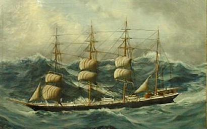 Keywords: Thomas G. Purvis - Wandsbek.jpg Artwork en Ship Portrait of the German four-masted bark Wandsbek in the Atlantic Ocean c 1900 - the windjammer is shown under reduced sails on the high sea ca 1900 oil canvas cm 40 60 private collection object history credit line signed lower left T G Purvis London and inscribed in the center water section Wandsbek accession number http //www fineartemporium com/se-Purvis-Wandsbek htm fineartemporium com PD-old-auto-1923 1933 Wandsbek ship 1892 Thomas G Purvis 20th-century sailing ships in paintings |