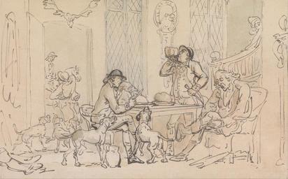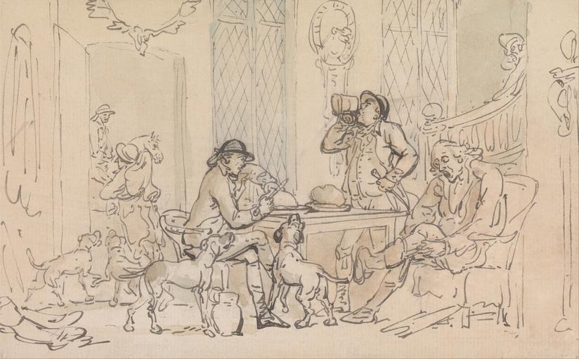 Keywords: Thomas Rowlandson - Breakfast before the Hunt - Google Art Project.jpg Inscribed in black ink on mount lower left No 11 ; Verso in graphite lower center D26692 Inscription _Signed_and_Dated Not signed not dated Not on View Pen and black and gray ink with brown and blue wash on medium moderately textured beige laid paper mounted on moderately thick moderately textured cream wove paper dogs animals dinner eating drinking meal breakfast horse animal interior men hunters hunt food antlers doorway windows chairs table saddle sporting art room special url_id DwFQvtzgvASQIQ PD-old-100-1923 1827 Drawings and watercolours by Thomas Rowlandson Google Art Project works by Thomas Rowlandson Hunting in art |