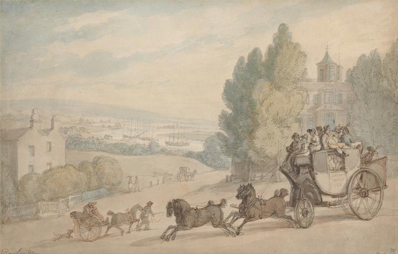 | Keywords: Thomas Rowlandson - The Canterbury-Dover Coach Passing Vanbrugh Castle - Google Art Project.jpg No inscription Inscription _Signed_and_Dated Not signed not dated Not on View Watercolor with pen and brown and gray ink over graphite on medium slightly textured blued white wove paper dog animal horses animals men women water windows wheels hills shore landform trees grass buildings castle fence carriages stage coaches genre subject landscape boats special url_id fgEL8x9jrSkt1w PD-old-100-1923 1827 Drawings and watercolours by Thomas Rowlandson Google Art Project works by Thomas Rowlandson |