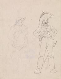 Keywords: Thomas Rowlandson - A Gendarme and Another Man - Google Art Project.jpg Inscribed in ink verso lower center PAUL MELLON COLLECTION stamp; in graphite verso lower right 3576 11- Inscription _Signed_and_Dated Not signed not dated Not on View Pen and red-gray ink and graphite; verso graphite sketch on medium moderately textured blued white wove paper men hats uniforms sketch genre subject special url_id 4wGr90qXfpbylQ PD-old-100-1923 1827 Drawings and watercolours by Thomas Rowlandson Google Art Project works by Thomas Rowlandson