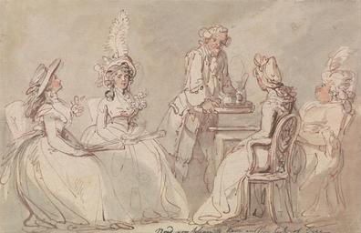 Keywords: Thomas Rowlandson - Ladies at Tea - Google Art Project.jpg between 1790 1795 London 1756 London 1827 Thomas male 2332358 Rowlandson British 1756 - 1827 /collection/yale-center-for-british-art/artwork/ladies-at-tea-thomas-rowlandson/2421647/ Thomas Rowlandson Artist /artist/thomas-rowlandson/4131603/ 4131603 /collection/yale-center-for-british-art/ Yale Center for British Art 2305845 http //britishart yale edu/ 2/23/2012 10 32 57 PM /collection/yale-center-for-british-art/artwork/ladies-at-tea-thomas-rowlandson/2421647/ 1790 between 1790 and 1795 sitting ladies servant man man feathers tea chairs table support furniture hats dresses fans costume accessories tray genre subject Watercolor with pen and red-brown and brown ink over graphite on medium moderately textured laid paper with gray wash line border mounted on medium moderately textured beige laid paper 178 2421647 False 1795 3/24/2012 7 22 28 PM YCBA/lido-TMS-5650 http //collections britishart yale edu/vufind/Record/1669958 Yale Center for British Art Paul Mellon Collection genre subject 1790 1800 London Creation w262 x h178 cm between 1790 and 1795 False 1 54682779456193 Item ladies-at-tea-thomas-rowlandson Ladies at Tea l 262 Inscribed in pen in dark gray ink lower right Would you please to have another Cup of Tea Inscription _Signed_and_Dated Not signed not dated Not on view Watercolor with pen and red-brown and brown ink over graphite on medium moderately textured laid paper with gray wash line border mounted on medium moderately textured beige laid paper sitting ladies servant man man feathers tea chairs table support furniture hats dresses fans costume accessories tray genre subject special url_id SAGQA3W3KrJOMA PD-old-100-1923 1827 Drawings and watercolours by Thomas Rowlandson Google Art Project works by Thomas Rowlandson Tea drinking in art 1790s drawings Sitting women in art |