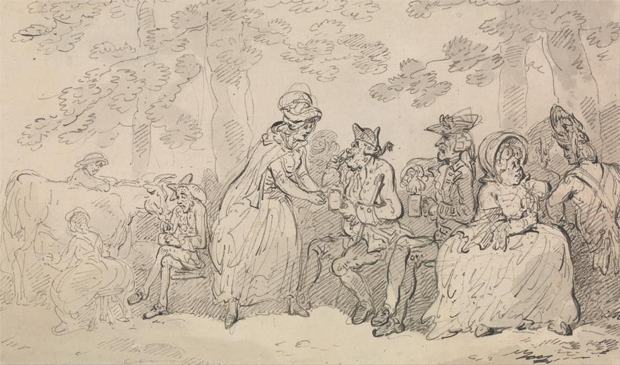 Keywords: Thomas Rowlandson - Milkmaids and Gentlemen in St. James's Park - Google Art Project.jpg No inscription Inscription _Marks watermark Shorter 184 Inscription _Signed_and_Dated Not signed not dated Not on View Pen and gray-brown ink with wash over graphite; verso pen and gray brown ink and watercolor blots on medium moderately textured blued white laid paper sitting milkmaids soldiers men women trees park grounds bonnets hats hats genre subject special url_id lAEySoJtkodupA PD-old-100-1923 1827 Drawings and watercolours by Thomas Rowlandson Google Art Project works by Thomas Rowlandson Milkmaids in art St James's Park in art 1800 Drawings of soldiers |