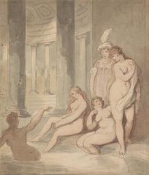 Keywords: Thomas Rowlandson - Nymphs at a Roman Bath - Google Art Project.jpg Inscribed in graphite on mount very faint lower left The Temple of Venus ; in graphite lower right very faint Thomas Rowlandson 1756 - 1827 Inscription _Signed_and_Dated Not signed not dated Not on View Watercolor with pen and gray and brown ink over graphite on medium slightly textured laid paper mounted on thick moderately textured beige wove paper bathing bath nymphs women bathers water columns architectural elements nudes genre subject historical subject special url_id kQE68V56UsbwZw PD-old-100-1923 1827 Drawings and watercolours by Thomas Rowlandson Google Art Project works by Thomas Rowlandson Ancient Roman baths in art Bathing females in art |