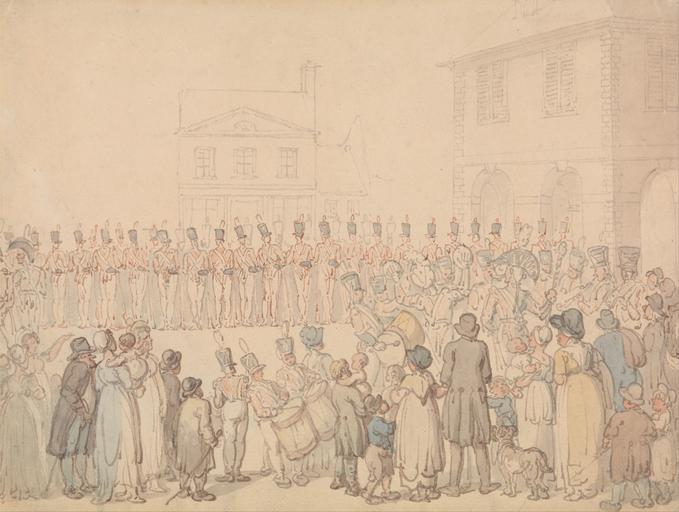 Keywords: Thomas Rowlandson - A Review of the Northapmton Militia at Brackley - Google Art Project.jpg Google Art Project watercolor London 1756 London 1827 Thomas male 2332358 Rowlandson British 1756 - 1827 /collection/yale-center-for-british-art/artwork/a-review-of-the-northapmton-militia-at-brackley-thomas-rowlandson/2423609/ Thomas Rowlandson Artist /artist/thomas-rowlandson/4131603/ 4131603 /collection/yale-center-for-british-art/ Yale Center for British Art 2305845 http //britishart yale edu/ 2/23/2012 10 34 10 PM /collection/yale-center-for-british-art/artwork/a-review-of-the-northapmton-militia-at-brackley-thomas-rowlandson/2423609/ 1772 undated dog animal crowd coats main garments children people by age group men women militia archways buildings hats uniforms military drums barrel-shaped genre subject Watercolor with pen and gray red brown-red and brown-gray ink; verso watercolor washes on medium slightly textured beige wove paper 198 2423609 False 1827 3/24/2012 7 42 11 PM YCBA/lido-TMS-5707 http //collections britishart yale edu/vufind/Record/1670010 Yale Center for British Art Paul Mellon Collection painting 1770 1830 France Creation w264 x h198 cm undated False 1 32642487046632 Item a-review-of-the-northapmton-militia-at-brackley-thomas-rowlandson A Review of the Northapmton Militia at Brackley a 264 Inscribed in graphite verso lower center Market Place Bruchley IV Units Inscription _Signed_and_Dated Not signed not dated Not on View Watercolor with pen and gray red brown-red and brown-gray ink; verso watercolor washes on medium slightly textured beige wove paper dog animal crowd coats main garments children people by age group men women militia archways buildings hats uniforms military drums barrel-shaped genre subject special url_id LAEUGfbYQbgP3w PD-old-100-1923 1827 Drawings and watercolours by Thomas Rowlandson Google Art Project works by Thomas Rowlandson British army of the French Revolution era |