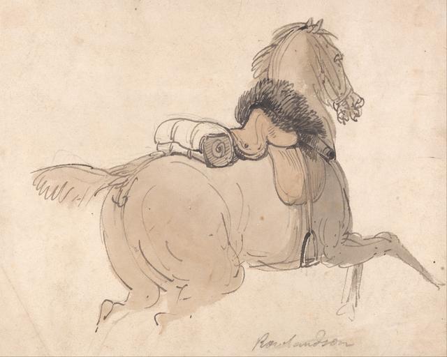 | Keywords: Thomas Rowlandson - A Saddled Cavalry Horse - Google Art Project.jpg Inscribed in graphite lower right Rowlandson Inscription _Signed_and_Dated Not signed not dated Not on View Pen and gray and black ink over graphite with brown wash on cream medium slightly textured wove paper glued to mat animal art horse animal cavalry fur sack saddle stirrups special url_id dQF06_C2SNJBJw PD-old-100-1923 1827 Drawings and watercolours by Thomas Rowlandson Google Art Project works by Thomas Rowlandson Drawings of horses |