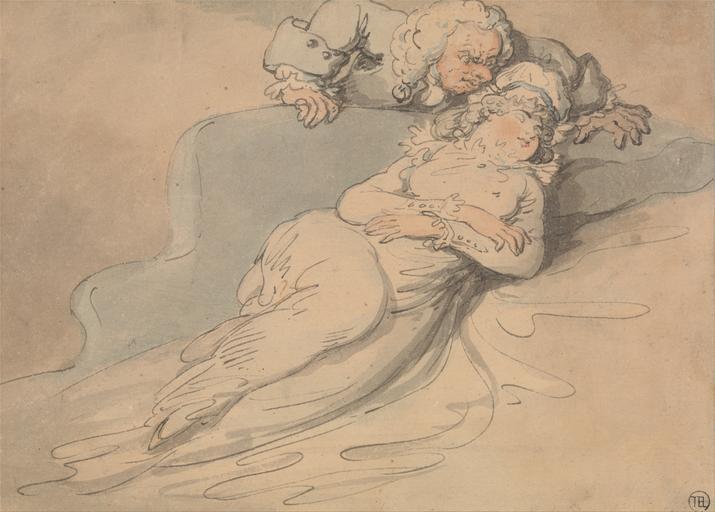 Keywords: Thomas Rowlandson - Sleeping Woman Watched by a Man - Google Art Project.jpg Inscribed in black ink lower right TEL collector's stamp ; verso in blue ink upper right Paul Mellon Collection seal Inscription _Signed_and_Dated Not signed not dated Not on View Watercolor with pen and gray ink on medium slightly textured beige wove paper sleeping man woman couch genre subject special url_id 2gFx9hAj3Q8hTw PD-old-100-1923 1827 Drawings and watercolours by Thomas Rowlandson Google Art Project works by Thomas Rowlandson |