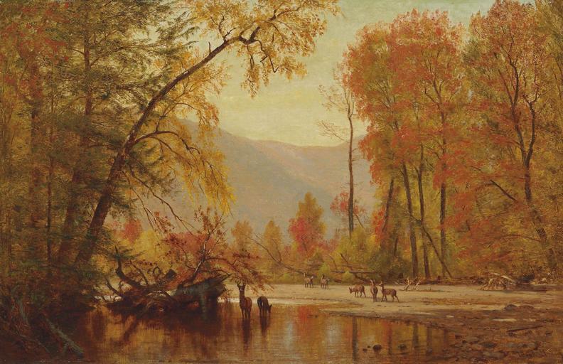Keywords: Thomas Worthington Whittredge - Autumn on the Delaware.jpg Artwork Creator Worthington Whittredge 1875 oil canvas cm 45 7 71 1 object history credit line Private collection Pittsburgh Pennsylvania <br/>WithHirschl Adler Galleries Inc New York <br/>Acquired by the present owner from the above 1990 exhibition history Waco Texas Sixth Annual Brazos Forum America Comes of Age Emerging Arts and Culture August 17-October 4 1990 <br/>Montgomery Alabama Montgomery Museum of Fine Arts Impressions of America The Warner Collection of Gulf States Paper Corporation June 18-July 28 1991 <br/>Memphis Tennessee The Dixon Gallery Gardens Impressions of America November 15 1992-January 24 1993 W Whittredge ~ lower right signature accession number Christie's online 5436880 2444 32 New York 18 May 2011 PD-old-100 Worthington Whittredge 1870s landscape paintings Landscape paintings of the United States Indian summer in art Autumn landscape paintings Oil paintings of landscapes |