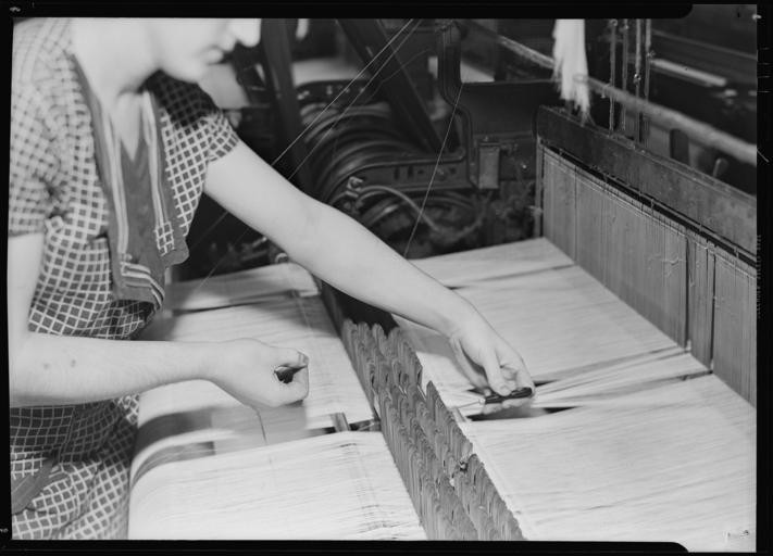 Keywords: nara:arcid=518563 u.s. national archives usnationalarchives lewis hine lewishine 1937 paterson new jersey newjersey the great depression thegreatdepression blackandwhite monochrome photo border black and white Original Caption: Paterson, New Jersey - Textiles. Threading broken warp thread through the eyes of drop wires, preparatory to tying the broken ends. Drop wires are part of the stop motion system. A drop wire is placed on each thread of the rayon warp shown here. When a thread breaks, the wire drops, making a contact and stopping the machine, March 1937 U.S. National Archives’ Local Identifier: 69-RP-324 Photographer: Hine, Lewis Subjects: The New Deal Tennessee Valley Authority Works Progress Administration Work Portraits The Great Depression Persistent URL: research.archives.gov/description/518563 Repository: Still Picture Records Section, Special Media Archives Services Division (NWCS-S), National Archives at College Park, 8601 Adelphi Road, College Park, MD, 20740-6001. For information about ordering reproductions of photographs held by the Still Picture Unit, visit: www.archives.gov/research/order/still-pictures.html Reproductions may be ordered via an independent vendor. NARA maintains a list of vendors at www.archives.gov/research/order/vendors-photos-maps-dc.html Access Restrictions: Unrestricted Use Restrictions: Unrestricted Original Caption: Paterson, New Jersey - Textiles. Threading broken warp thread through the eyes of drop wires, preparatory to tying the broken ends. Drop wires are part of the stop motion system. A drop wire is placed on each thread of the rayon warp shown here. When a thread breaks, the wire drops, making a contact and stopping the machine, March 1937 U.S. National Archives’ Local Identifier: 69-RP-324 Photographer: Hine, Lewis Subjects: The New Deal Tennessee Valley Authority Works Progress Administration Work Portraits The Great Depression Persistent URL: research.archives.gov/description/518563 Repository: Still Picture Records Section, Special Media Archives Services Division (NWCS-S), National Archives at College Park, 8601 Adelphi Road, College Park, MD, 20740-6001. For information about ordering reproductions of photographs held by the Still Picture Unit, visit: www.archives.gov/research/order/still-pictures.html Reproductions may be ordered via an independent vendor. NARA maintains a list of vendors at www.archives.gov/research/order/vendors-photos-maps-dc.html Access Restrictions: Unrestricted Use Restrictions: Unrestricted