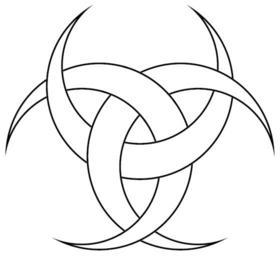 Keywords: Three-Crescents-Diane-Poitiers.png Three crescents interlaced so as to be incomplete Borromean rings This was the emblem of Diana of Poitiers and her lover Henry II of France see external site http //www liv ac uk/~spmr02/rings/moons html It has also come to be used in the coat of arms of Bréval see Image Blason ville fr Bréval Yvelines svg and Crécy-la-Chapelle see Image Blason CrecylaChap svg and in a slightly different form as the emblem or petites armoiries of the city of Bordeaux see en Image Bordeaux30 jpg In recent years it has been taken up by a few neopagans as an alternative version of the symbol Image Triple-Goddess-Waxing-Full-Waning-Symbol png though it has an unfortunate resemblance to a modern biohazard symbol For a version in symbolic colors see Image Three-Crescents-Diane-Poitiers-multicolored png For a solid form of the symbol see the lower corner of Image Religious symbols svg own -- Generated by means of the following PostScript code <pre> 306 396 translate 5 setlinewidth 30 rotate /cresc -75 0 translate 0 0 150 210 150 arc -32 1619076 0 123 2009724 142 5 217 5 arcn closepath def gsave cresc clip stroke grestore gsave 240 rotate cresc gsave 1 setgray fill grestore clip stroke grestore gsave 120 rotate cresc gsave 1 setgray fill grestore clip stroke grestore gsave -75 0 translate 1 setgray 0 0 150 7 42 arc -32 1619076 0 123 2009724 42 7 arcn closepath fill 0 0 150 261 282 arc -32 1619076 0 123 2009724 293 269 arcn closepath fill grestore cresc clip newpath 0 setgray 0 0 150 5 45 arc stroke -32 1619076 0 123 2009724 45 5 arcn stroke 0 0 150 260 283 arc stroke -32 1619076 0 123 2009724 294 268 arcn stroke showpage EOF</pre> 2005 AnonMoos Also ca 1400 the Hungerford family of Farleigh castle in western England used a design of three similarly-interlaced sickles as one of their heraldic badges ; and the arms attributed to Ednywain ap Bradwen founder of the 15th noble tribe of north Wales have three interlaced white serpents on a red shield Reference The Complete Book of Heraldry by Stephen Slater ISBN 1843096986 pages 124 and 191 see also external link http //www liv ac uk/~spmr02/rings/snakes html For another such symbol see Image Snoldelev-three-interlaced-horns png Three-Crescents-Diane-Poitiers full-black png Three-Crescents-Diane-Poitiers svg Diane de Poitiers Goddess movement - Thealogy symbols Wiccan symbols Crescent moon symbols Crescent-shaped incomplete Borromean rings interlacings Images with PostScript source code |