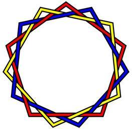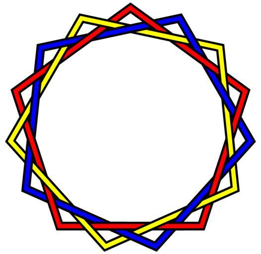Keywords: Three-interlaced-pentagons-Brunnian-30crossings.svg Three interlaced pentagons which form a 30-crossing Brunnian link part of the following series of Brunnian links <gallery> Image BorromeanRings svg Borromean rings 6 crossings Image Brunnian-3-not-Borromean png 12 crossings Image Three-triang-18crossings-Brunnian png 18 crossings Image Three-interlaced-squares-Brunnian-24crossings svg 24 crossings Image Three-interlaced-pentagons-Brunnian-30crossings svg 30 crossings </gallery> Self-made image converted from the following vector PostScript source code <pre> /X 72 mul 90 add dup cos 100 mul exch sin 100 mul def/A 0 X moveto 1 1 4 X lineto for closepath gsave 7 2 setlinewidth 0 setgray stroke grestore stroke def 300 396 translate 1 8 dup scale 3 6 setlinewidth 1 0 0 setrgbcolor A gsave 24 rotate 1 1 0 setrgbcolor A 24 rotate 0 0 1 setrgbcolor A grestore 5 7 2 setlinewidth 0 setgray -29 5 -80 90169944 moveto 26 0 rlineto stroke 30 2 -80 90169944 moveto 14 0 rlineto stroke 3 6 setlinewidth 1 0 0 setrgbcolor -29 6 -80 90169944 moveto 27 0 rlineto stroke 30 1 -80 90169944 moveto 15 0 rlineto stroke 1 8 setlinewidth -31 -80 00169944 moveto 3 0 rlineto stroke 28 5 -81 80169944 moveto 3 0 rlineto stroke 72 rotate repeat showpage EOF</pre> 2010 AnonMoos 3 component links Brunnian links Decorative knots Regular pentagons Images with PostScript source code Knots and links on transparent background Round graphic ornaments
