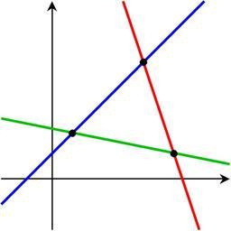 Keywords: Three Lines.svg Three lines on the xy plane Each pair of lines intersect but the three lines have no single point in common Own date Jim belk Lines