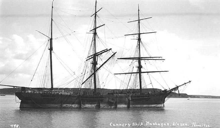 | Keywords: Three masted cannery ship, possibly the iron bark STAR OF INDIA, Nushagak, ca 1912 (THWAITES 100).jpeg check categories 27 October 2016 1 Photograph Creator John E Thwaites Caption on image Cannery ship Nushagak Alaska PH Coll 247 160 Subjects LCTGM Star of India Bark ; Sailing ships--Alaska--Nushagak depicted place United States--Alaska--Nushagak ca 1912 Institution University of Washington UWASH-THWAITES-source accession number thwaites 100 PD-old-auto-1923 1940 Information field Order Number THW094 Images from the John E Thwaites Photographs of Alaska Collection to check Sailing ships |