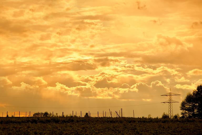 Keywords: thunderstorm clouds cloud formation sky dark clouds clouds form forward dusk gewitterstimmung mood evening sun cloud cover sunset sunrise landscape power poles energy mast