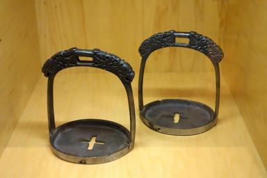 Keywords: Tibetan stirrups, 19th century, iron - Bata Shoe Museum - DSC00259.JPG en Exhibit in the Bata Shoe Museum Toronto Ontario Canada The museum permitted photography without restriction 2013-07-04 10 41 09 own Daderot cc-zero Uploaded with UploadWizard Miscellany in the Bata Shoe Museum Metalwork of Tibet Stirrups of Tibet |