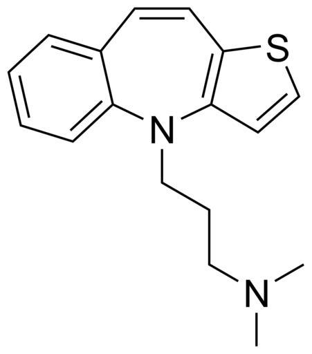 | Keywords: Tienopramine.png Structure of tienopramine Own 2010-05-03 Chemgirl131 wikipedia en PD-chem Chemgirl131 Original upload log page en wikipedia Tienopramine png 2010-05-03 02 09 Chemgirl131 1373×1557× 22302 bytes <nowiki> Move to Commons I made this anyone can use it Own Chemgirl131 Talk <nowiki> </nowiki> Special Con</nowiki> Tertiary amines Nitrogen heterocycles Sulfur heterocycles Tricyclic antidepressants | ||||