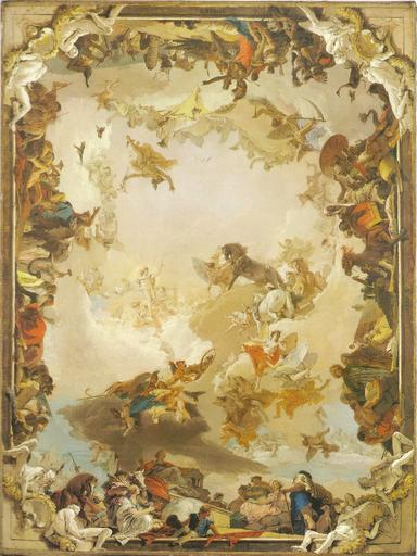 Keywords: Tiepolo, Giovanni - Apollo und die vier Kontinente - 1752 - v.2.jpg Artwork Creator Giovanni Battista Tiepolo 1752 Oil on canvas cm 185 4 139 4 Institution Metropolitan Museum of Art Gallery 622 object history credit line EVROPA / AFRICÆ / AMERICA / ASIA http //www metmuseum org/toah/works-of-art/1977 1 3 www metmuseum org Scan settings million colors 220dpi accession number 1977 1 3 own Book scan Heimberger Werner und Staschull Matthias Tiepolos Welt Das Deckenfresko im Treppenhaus der Residenz Würzburg München Bayerische Schlösserverwaltung 2006 1 Auflage ISBN 3-932982-73-8 S 22 <gallery> File Tiepolo Giovanni - Apollo und die vier Kontinente v 1 - 1752 jpg File Giovanni Battista Tiepolo - Allegory of the Planets and Continents jpg </gallery> PD-old-100 See also Category Treppenhaus Residenz Würzburg Deckenfresco Allegorical paintings by Giovanni Battista Tiepolo Apollo und die vier Kontinente 1752 oil on canvas paintings in the United States 18th-century allegorical paintings Paintings of cornucopia Italian Rococo paintings in the Metropolitan Museum of Art continents in art Scans by Mattes Work by Mattes 2011 People with camels in art People with horses in art Mythological figures on clouds Scanned with HP Photosmart C5200 |