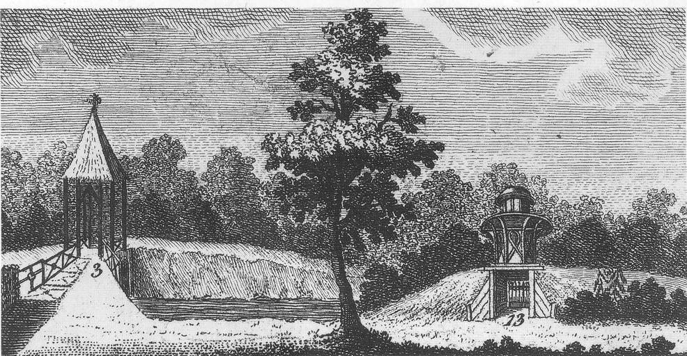 | Keywords: Tiergarten, Schlosspark Bellevue, Othaheitischer Pavillon, 1795, Peter Haas.jpg Othaheitischer Pavillon Tahitian pavilion on artificial hill and straw-covered bridge at the park of Bellevue Palace in Berlin 1795 engraving scan from book Folkwin Wendland Der Große Tiergarten in Berlin Berlin 1993 p 67 1795 Peter Haas 1854-around 1805 PD-old-100 Bellevue Palace Berlin 18th-century engravings 1795 in Berlin | ||||