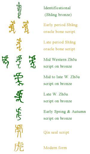 Keywords: Tiger colored gif.gif en Chart comparing Chinese character 虎 hu3 'tiger' from bronze inscriptions to other forms Created entirely by uploader in Word and Photoshop using CGI rendition of tiger clan emblem from rubbing plus typed bronze oracle bone and seal fonts made available for public use by the Academia Sinica's Chinese Document Processing Laboratory CDPL under the Institute of Information Science with assistance from the Bronze Inscription Research Team BIRT under the Institute of History and Philology of the Academia Sinica Own Dragonbones 2008-05-31 na na na Bronze inscriptions 虎 Chinese character for tiger |