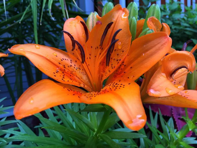 Keywords: tiger lily nature orange flower lily floral plant petals bright spring bloom flowering blossom rain