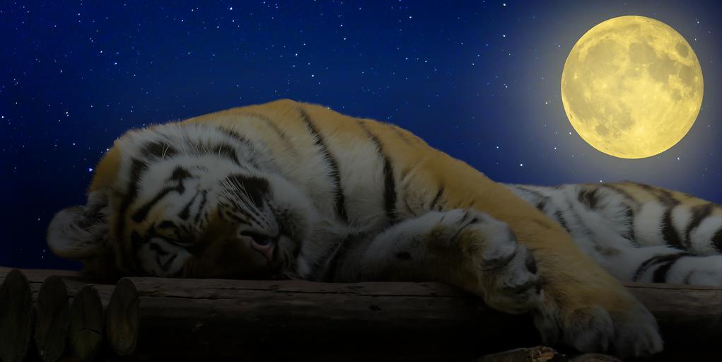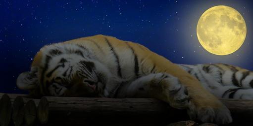 Keywords: tiger sleep good night cat rest relaxation break moon night concerns
