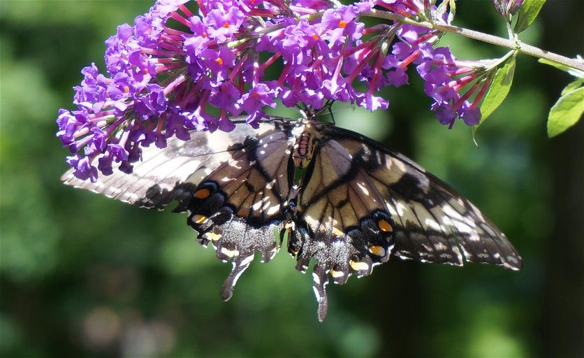 Keywords: tiger swallowtail butterfly bush butterfly insect animal flower blossom bloom garden shrub nature winged yellow purple eastern natural flora fauna wild