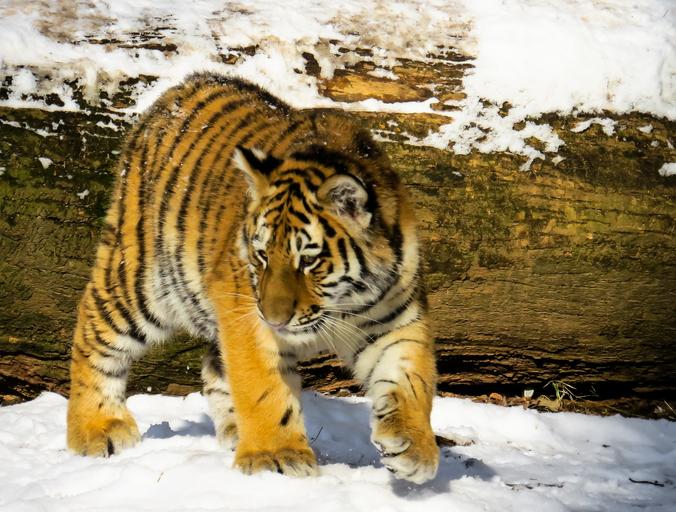 Keywords: tiger tiger cub cat young animal nuremberg wild winter cold young tiger close predator dangerous zoo watch animals tiergarten view