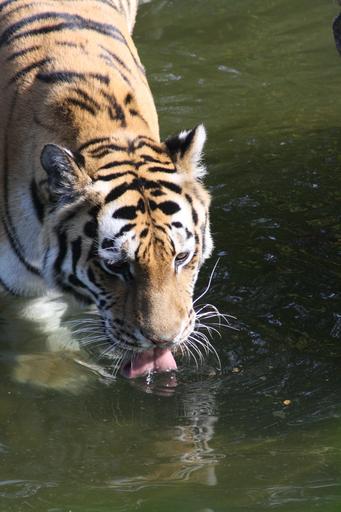 Keywords: tigers zoo stripes water nature nature protection law cat large white beige tongue drink