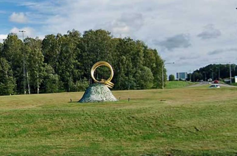 Keywords: Timboholmsrondellen.JPG sv Guldringarna i Timboholmsrondellen Skövde Västra Götalands län Sverige own DegaZ Skövde Roundabout art in Sweden Sculptures in Skövde