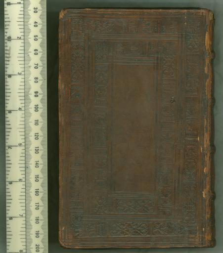 Keywords: -Titi Liuii ... libri omnes ... recogniti, & ... denuo? editi. Quibus adiuncta est chronologia nova, etc.- -Francofurti ad Mœnum - impressum apud Georgium Coruinum; impensis Sigismundi & Io - Lower cover (C143b4).jpg Style Panel design; Caption Lower cover; Colour Brown; Edge Red exhibition history Decorative Technique Tooled in blind; Cover Material Calf In fact the first ten books only with the Epitomes of Florus of books 1-20 No more published in this edition Imperfect; wanting the titleleaf and dedicatory epistle which are supplied in xerocopy from a copy in the Niedersa chsische Staats- und Universita tsbibliothek Go ttingen In a late sixteenth-century Oxford blind-tooled brown calf binding object history Text 1578; Frankfurt; Unspecified object type Cc-zero place of creation Binding England place of discovery Oxford bookbinding 1500-1640 including a supplement to Neil Ker's fragments of medieval manuscripts used as pastedowns in Oxford bindings / David Pearson David Pearson 1955- Oxford Oxford Bibliographical Society 2000 British Library image http //www bl uk/catalogues/bookbindings/LargeImage aspx RecordId 020-000017545 ImageId ImageId 56578 Copyright BL Titi Liuii libri omnes recogniti denuo editi Quibus adiuncta est chronologia nova etc Francofurti ad Mœnum impressum apud Georgium Coruinum; impensis Sigismundi Iohannis Feyrabendinorum 1578 Uploaded with GWToolset Titi Liuii libri omnes recogniti denuo editi Quibus adiuncta est chronologia nova etc Francofurti ad Mœnum impressum apud Georgium Coruinum; impensis Sigismundi Io - Lower cover C143b4 http //www webarchive org uk/bldatasets/bindings/c143b4 jpg Bookbinding 16th-century bookbinding British Library Bookbindings -Titi Liuii ... libri omnes ... recogniti, & ... denuo? editi. Quibus adiuncta est chronologia nova, etc.- -Francofurti ad Mœnum - impressum apud Georgium Coruinum; impensis Sigismundi & Io - Lower cover (C143b4).jpg Style Panel design; Caption Lower cover; Colour Brown; Edge Red exhibition history Decorative Technique Tooled in blind; Cover Material Calf In fact the first ten books only with the Epitomes of Florus of books 1-20 No more published in this edition Imperfect; wanting the titleleaf and dedicatory epistle which are supplied in xerocopy from a copy in the Niedersa chsische Staats- und Universita tsbibliothek Go ttingen In a late sixteenth-century Oxford blind-tooled brown calf binding object history Text 1578; Frankfurt; Unspecified object type Cc-zero place of creation Binding England place of discovery Oxford bookbinding 1500-1640 including a supplement to Neil Ker's fragments of medieval manuscripts used as pastedowns in Oxford bindings / David Pearson David Pearson 1955- Oxford Oxford Bibliographical Society 2000 British Library image http //www bl uk/catalogues/bookbindings/LargeImage aspx RecordId 020-000017545 ImageId ImageId 56578 Copyright BL Titi Liuii libri omnes recogniti denuo editi Quibus adiuncta est chronologia nova etc Francofurti ad Mœnum impressum apud Georgium Coruinum; impensis Sigismundi Iohannis Feyrabendinorum 1578 Uploaded with GWToolset Titi Liuii libri omnes recogniti denuo editi Quibus adiuncta est chronologia nova etc Francofurti ad Mœnum impressum apud Georgium Coruinum; impensis Sigismundi Io - Lower cover C143b4 http //www webarchive org uk/bldatasets/bindings/c143b4 jpg Bookbinding 16th-century bookbinding British Library Bookbindings |