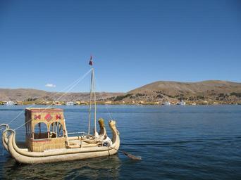 Keywords: Titicaca reed boat.jpg en A reed boat on Lake Titicaca Peru 2011-07-26 23 46 31 own ProjectManhattan cc-zero Uploaded with UploadWizard Uros islands Lake Titicaca Reed boats of South America