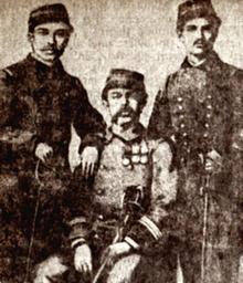 Keywords: Titus Dunka and comrades, 1870.jpg en Photograph of Romanian adventurer socialist militant and journalist Titus Dunka seated middle with two other soldiers of the French Army in the Franco-Prussian War Magazin Istoric September 1968 unknown/uncredited 1870 Titus Dunka French military personnel of the Franco-Prussian War People in 1870 1870 in France 1870 in Romania PD-old-100 |