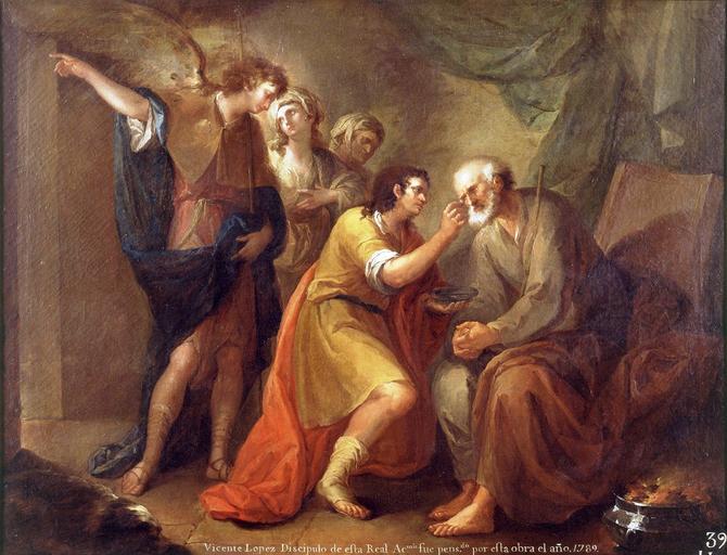 Keywords: Tobías curando a su padre (Museo de Bellas Artes de Valencia).jpg La obra representa a Tobías curando a su padre de la ceguera que padecía 1789 oil on canvas Size cm 99 76 Institution Museo de Bellas Artes de Valencia http //www cult gva es/mbav/data/es06064 htm accession number 633 http //www cult gva es/mbav/data/0633 jpg PD-old-100 Paintings of Tobit Religious paintings by Vicente López Portaña Paintings by Vicente López Portaña in the Museu de Belles Arts de València 18th-century paintings in the Museu de Belles Arts de València 1789 paintings in Spain |