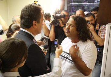 Keywords: indoor O presidente do Sindicato dos Servidores do Poder Legislativo do Estado do Paraná (Sindilegis/PR) e ex-líder dos seguranças da Casa, Edenilson Carlos Ferry, vulgo Tôca, protocolou nesta segunda-feira (7) requerimento ao presidente da Assembleia Legislativa, deputado Valdir Rossoni (PSDB), comunicando sua licença do cargo de presidente do sindicato. De acordo com o documento entregue pelo advogado Cláudio Dalledone Júnior, o afastamento temporário de Tôca da presidência do Singilegis/PR tem o "objetivo de preservar os interesses dos servidores sindicalizados, evitando que qualquer eventual rusga causada pelos últimos acontecimentos repercutam na definição dos destinos dos vários funcionários da ALEP". Tôca responde na Justiça pela coautoria de um duplo homicídio. De acordo com a denúncia do Ministério Público Estadual (MP), o crimo ocorreu em Colombo, na Região Metropolitana de Curitiba, em fevereiro de 1990. Foto de arquivo do dia 02/02/2011 durante a abertura do cofre da segurança: Nani Gois / Assembleia Legislativa do Paraná O presidente do Sindicato dos Servidores do Poder Legislativo do Estado do Paraná (Sindilegis/PR) e ex-líder dos seguranças da Casa, Edenilson Carlos Ferry, vulgo Tôca, protocolou nesta segunda-feira (7) requerimento ao presidente da Assembleia Legislativa, deputado Valdir Rossoni (PSDB), comunicando sua licença do cargo de presidente do sindicato. De acordo com o documento entregue pelo advogado Cláudio Dalledone Júnior, o afastamento temporário de Tôca da presidência do Singilegis/PR tem o "objetivo de preservar os interesses dos servidores sindicalizados, evitando que qualquer eventual rusga causada pelos últimos acontecimentos repercutam na definição dos destinos dos vários funcionários da ALEP". Tôca responde na Justiça pela coautoria de um duplo homicídio. De acordo com a denúncia do Ministério Público Estadual (MP), o crimo ocorreu em Colombo, na Região Metropolitana de Curitiba, em fevereiro de 1990. Foto de arquivo do dia 02/02/2011 durante a abertura do cofre da segurança: Nani Gois / Assembleia Legislativa do Paraná |
