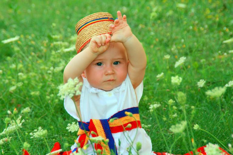 Keywords: toddler traditional costume flowers grass green