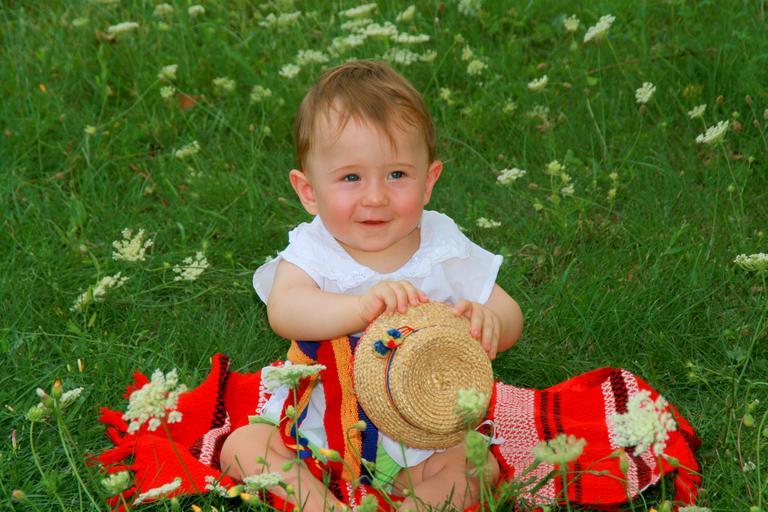 Keywords: toddler traditional costume flowers grass green